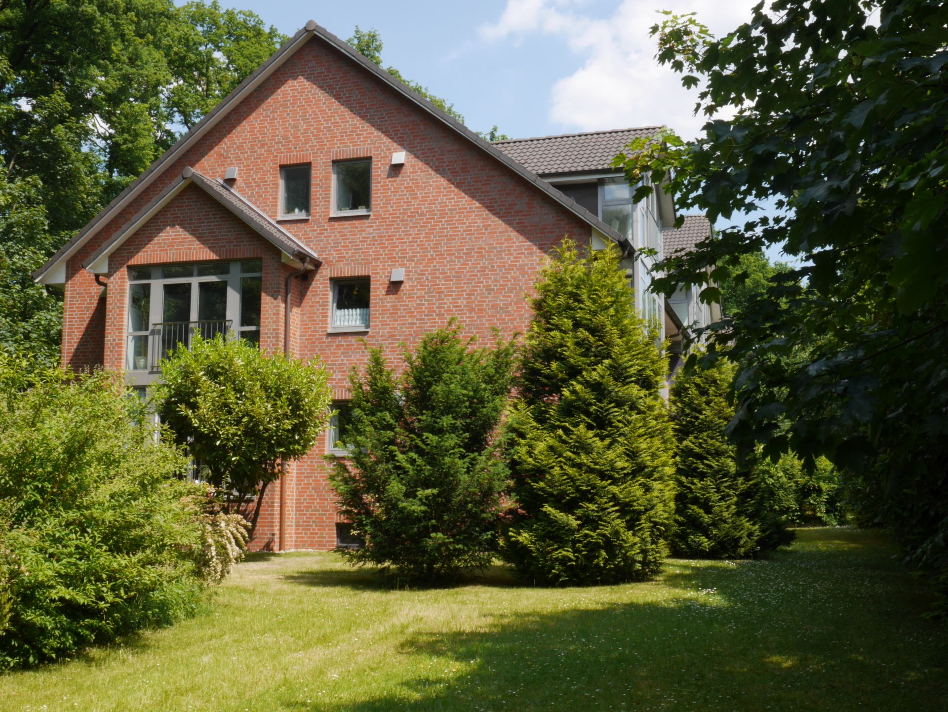 Es kann eine Einzelgarage oder ein Stellplatz angemietet werden. Im Garten befindet sich ein für alle Mieter zugänglicher Grillplatz sowie ein Spielplatz für die Kinder.